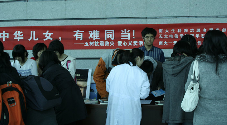 2010年4月,生科院志愿者服务部举行玉树赈灾义卖活动