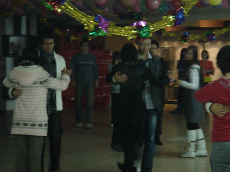 整个舞会的第一个高潮出现在同学们两两共舞的时段。男同学主动邀请,女同学大方应邀。伴着悠然唯美的音乐,同学们把自己学会的舞步尽情地展示出来,如翩翩蝴蝶般飞扬,舞动。青春的气息弥漫全场。