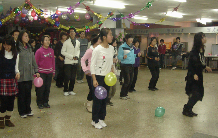 然后,进行了备受期盼的假面环节。戴上面具后的女生们,再次迎来了男生的盛情邀约。此时,气氛更加活跃,将舞会推向了另一个高潮。接下来是舞会的游戏环节。各小组热情高涨,积极参与,游戏过程中充满了欢声笑语。获胜小组获得了精美的奖品。在舞会临近尾声的时候,所有参加舞会的同学共同参与表演了兔子舞,无论是单人舞、双人舞还是集体舞,每一种兔子舞都是全员参与、满场笑声,尤其在最后的集体兔子舞阶段,孙露露老师和由佳老师到场助阵,被热情的同学们拉入舞池,与大家一起舞动。欢快的节奏一如同学们们飞扬的青春,满满的都是活力与希望。