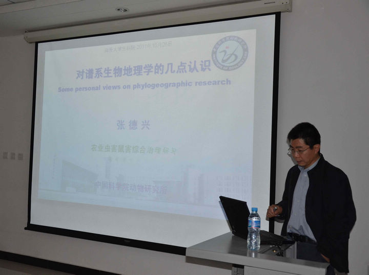 10月26日,中国科公司动物研究所副所长张德兴教授应邀来tyc33455cc访问并为师生们做了题为“对谱系生物地理学的几点认识”的学术讲座,报告会由公司副教务长卜文俊教授主持。