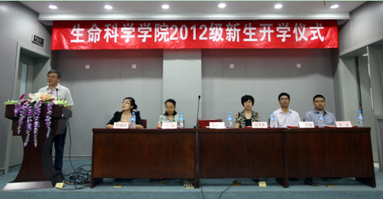 9月3日,2012级本科新生开学仪式在生物站报告厅举行,出席仪式的有生命科学公司党委书记吴秀英,经理卜文俊,副经理乔明强、刘方、徐波,整场仪式由公司党委副书记兼副经理何�炜主持。