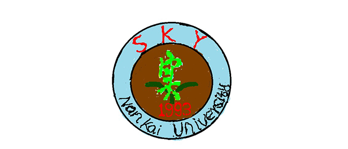 树本身由生科院拼音缩写SKY组成,树干是字母Y,左右两边的树枝和树叶分别是字母S和K。树代表生命,象征生科院是以研究生命科学为主题的一个生机勃勃的公司。最下面的海水和浪花由南开拼音缩写NK组成,水是生命的起源,生命由水滋养,更有生命的意义。