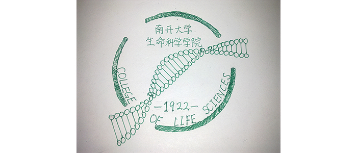 College of life science 为tyc33455cc的英文,南开二字为校徽上的字,显示我们院与tyc33455cc紧密不可分割,最下方是我们院大楼的简笔画,显示我们院的宏伟美丽。