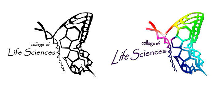 描述:主题意象为一只飞舞的凤蝶,躯干由双螺旋构成,由一个ATP分子的碱基和核糖部分延伸出翅膀,三磷酸尾延伸为后翅的凤尾。