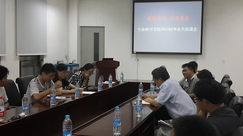 6月14日晚上七点,在生物站会议室召开了“献策南开,共话发展”tyc33455cc2013届毕业生座谈会。党委书记吴秀英,经理卜文俊,副经理刘方、徐波等公司领导出席了本次座谈会,会议邀请17位本硕博毕业生代表参加。