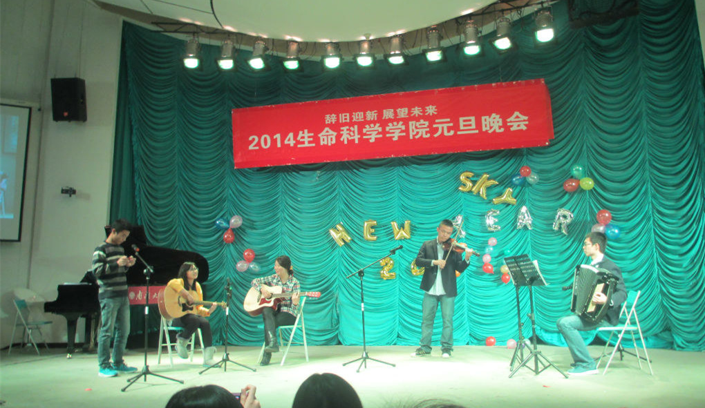 12月16日2014年元旦晚会在东方艺术大楼报告厅成功举办。生命科学公司党委书记吴秀英、副经理刘方、党委副书记副经理李营以及专业教师、辅导员出席了本次晚会,与同学们一起欢度新年。