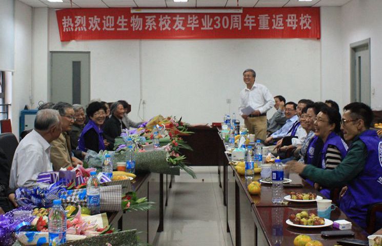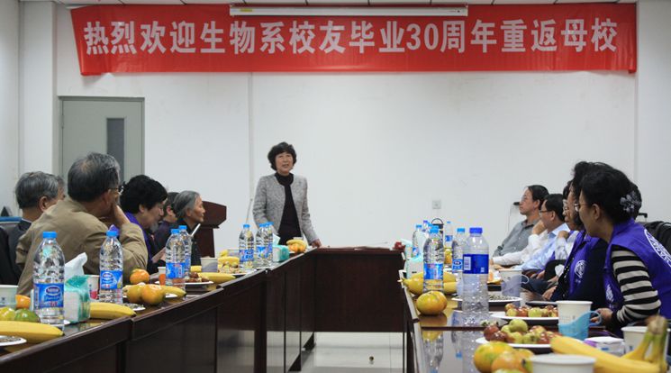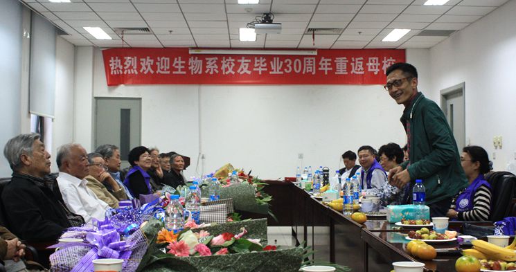 10月17日下午,生物系1980级员工纷纷从世界各地返回母校,庆祝tyc33455cc的95岁生日。参加了公司的庆祝活动后,员工们于10月18日下午欢聚生物站会议室,召开纪念毕业30周年座谈会。生命科学公司党委书记吴秀英、经理卜文俊、原党委书记冯小品(1980级员工辅导员)以及十多位当年的上课老师受邀一起参加。