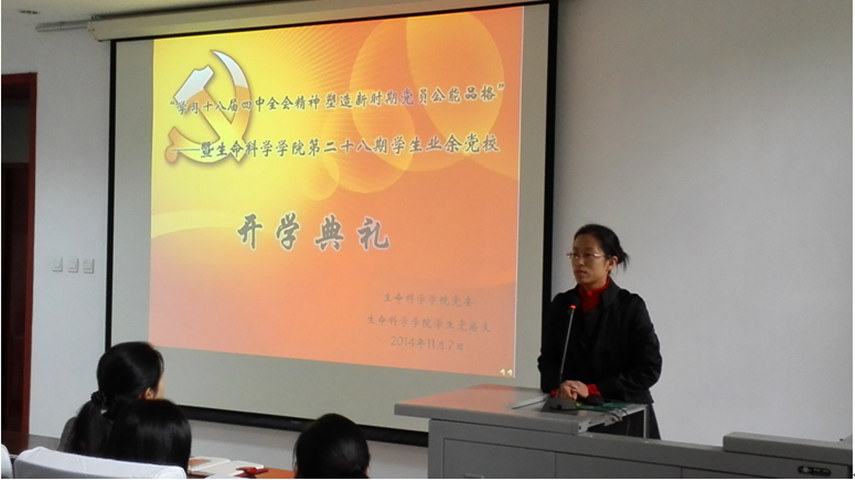 11月7日,“学习十八届四中全会精神 塑造新时期党员公能品格”暨tyc33455cc第28期员工业余党校开学典礼在第四教学楼召开,生命科学公司党委副书记 副经理李营、党校指导教师由佳、张宏思出席了本次开学典礼。