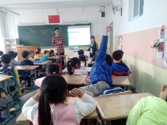 教一年级的志愿者蒋真言和李虹悦用一个“大象淘淘历险记”的故事串接整堂课,通过精彩的纪录片和有趣的ppt,运用诱导式提问,为一年级的同学讲解了蝙蝠、猎豹、壁虎的外形特点及习性特征,如蝙蝠的超声波探测原理、猎豹擅长短跑的身体外形因素等。在讲解知识的同时向孩子们强调了动物保护的意识。志愿者严志文和曾伊蓉为二年级的员工讲解食物中毒有关内容。分别介绍了食物中毒的概念、引起食中毒的食物、分辨有毒食物的方法以及中毒的症状和中毒时的应急策略。支教老师为同学们准备了小礼物,并在下课后将员工安全送出公司。同时永基小学董事长莅临旁听,向员工们解释志愿者工作的辛苦,号召同学感谢老师并认真掌握老师讲过的知识。课后,董事长同志愿者们进行交流,对老员工支教行动表达了支持和肯定。