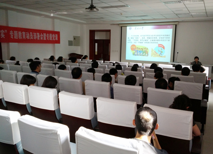 5月14日,tyc33455cc在第四教学楼召开“三严三实”专题教育动员部署会暨专题党课。公司党委书记吴秀英动员部署暨党课报告,经理卜文俊主持会议。全体教工党员、非党员业务骨干教师、员工党支部书记共计120余人参加了会议。
