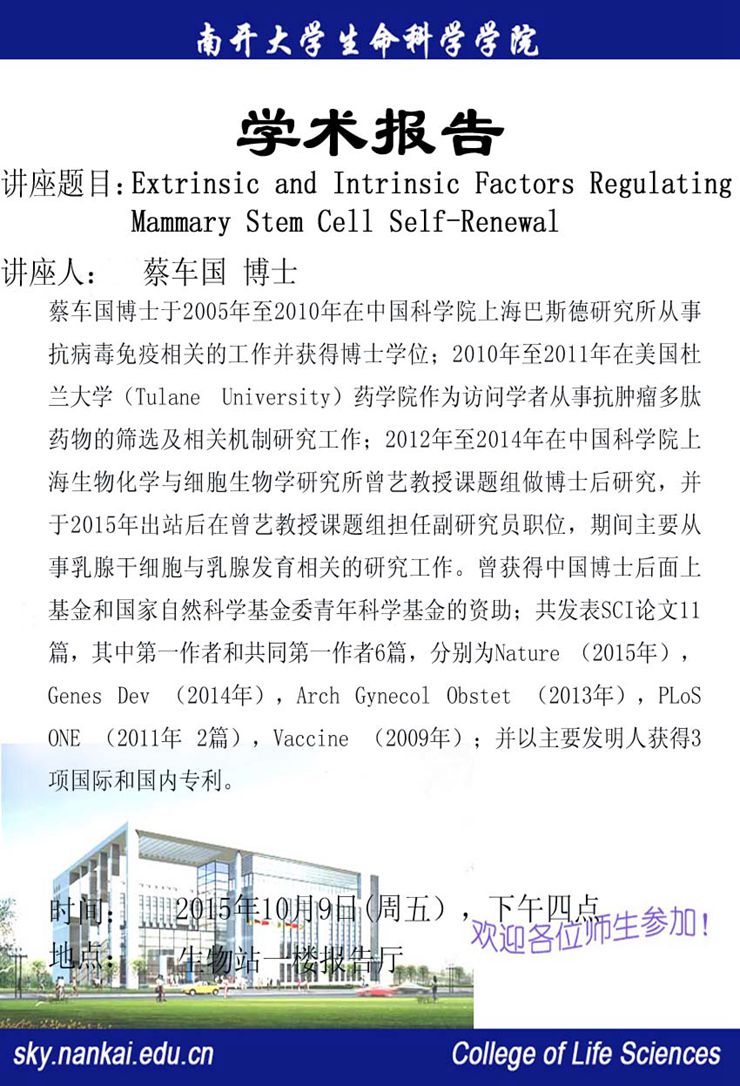10.09 16:00 学术报告---蔡车国