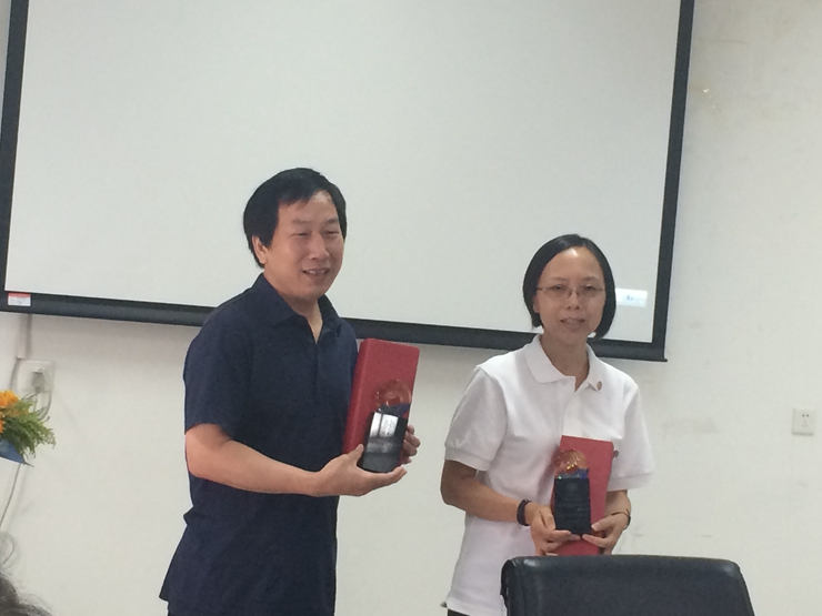 会上,为表彰热心公益的员工,向刘凤岐、廖国娟两位员工颁发了热心公益奖奖杯。