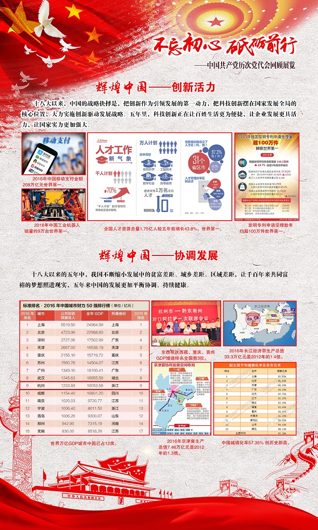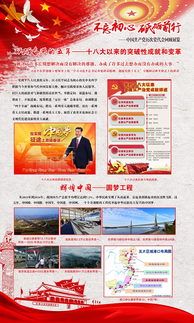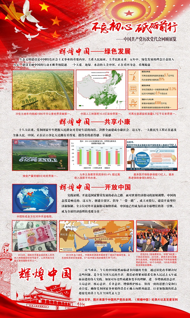 10月18日,公司党委组织员工党员在观看十九大开幕式之前,参观了本次展览。展览从开天辟地的中共一大说起,提炼了党的每次代表大会的主题和要点,介绍了会议举行的背景和意义,配以珍贵的历史图片。同时也介绍了十八届三中全会等在党的历史上具有转折性意义的会议,对于党的十八大以来的突破性成就和变革进行了详细介绍,从“圆梦工程”、“创新活力”、“协调发展”、“绿色发展”、“共享小康”、“开放中国”等方面回顾了这五年来,党和国家在以习近平同志为核心的党中央的领导下取得的辉煌成就。