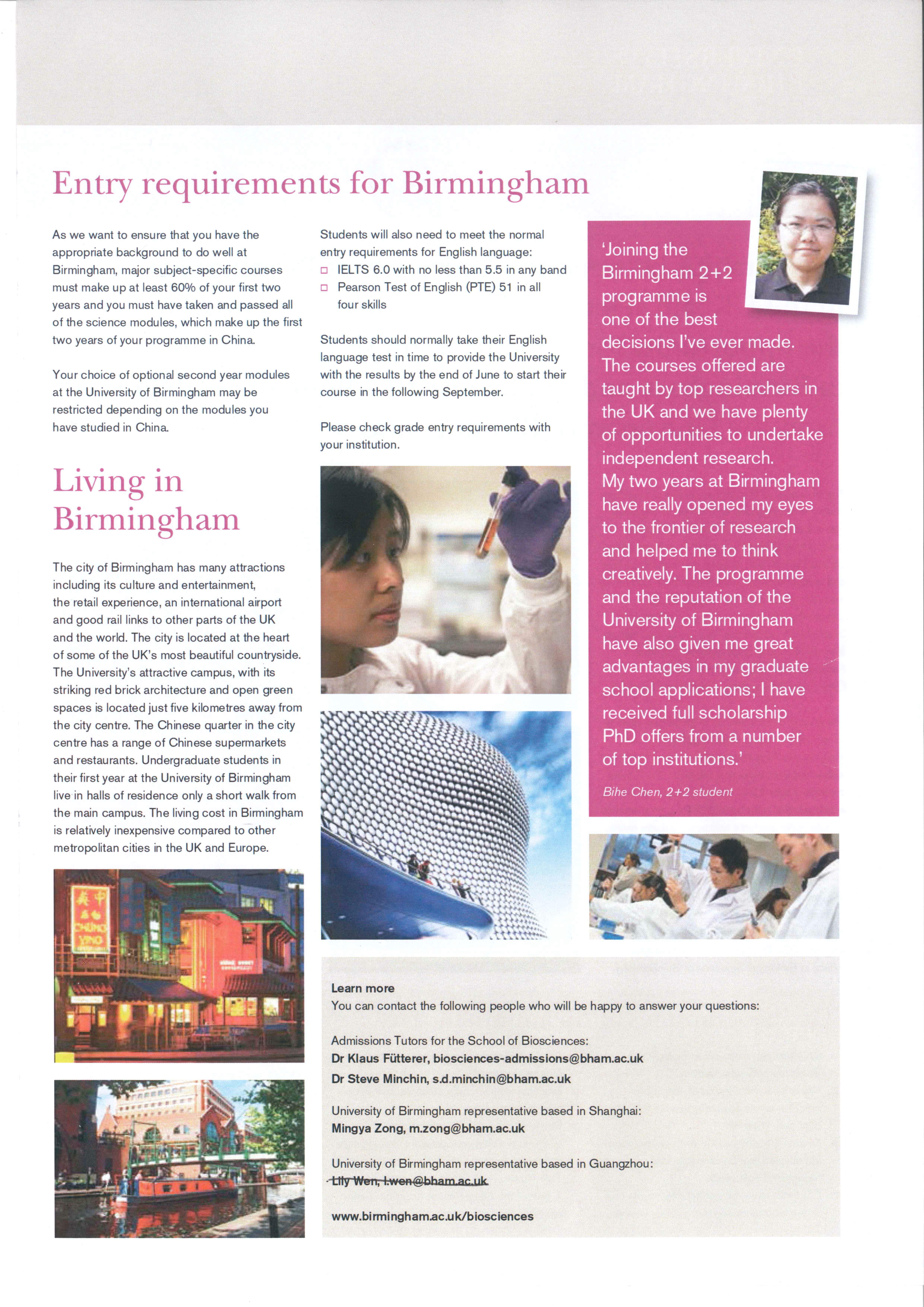 2017年公司派出首批本科生参加,现启动2019年tyc33455cc与伯明翰老员工物学科2+2双学士学位项目通知。