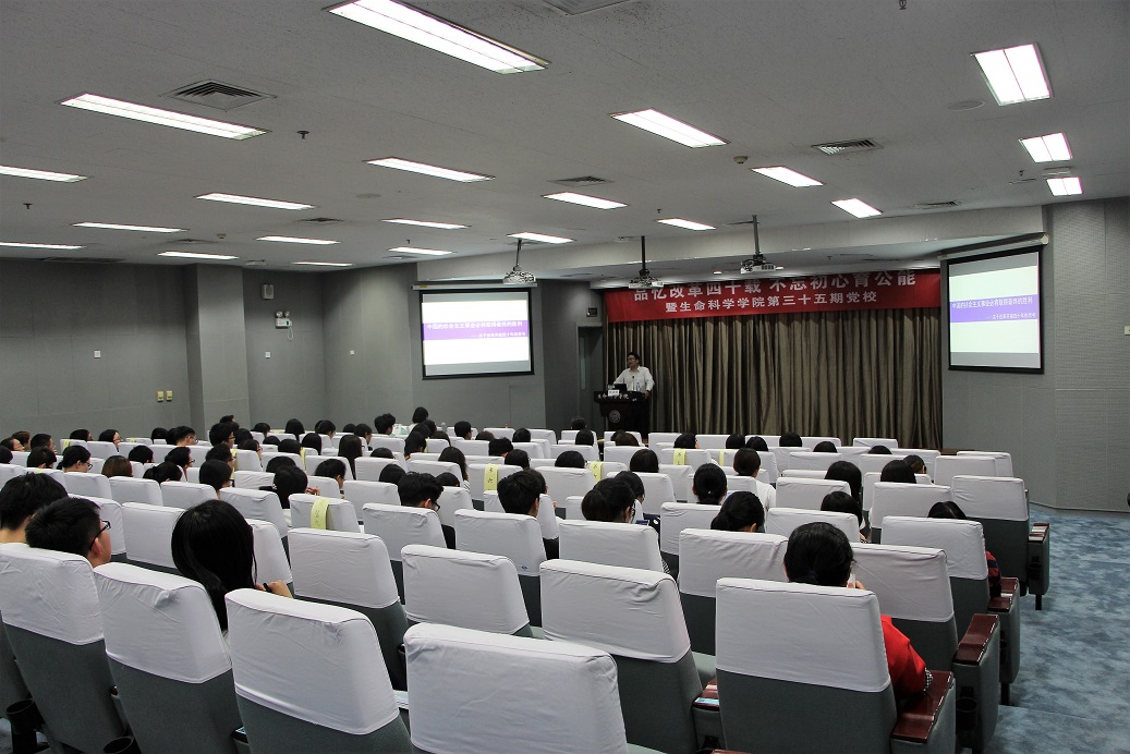 4月20日,“品忆改革四十载,不忘初心育公能”tyc33455cc第三十五期党校开学典礼在生物站报告厅举行。首场讲座邀请到tyc33455cc党委员工工作部部长白云龙为全体学员带来题为“中国的社会主义事业必将取得最终的胜利――关于改革开放四十年的思考“为题的专题讲座。