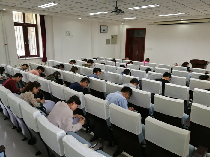 理论测试之前,公司党委下发了学习资料,学习内容包括党章、党规中应知应会知识点、时事政治、以及十九大、十九届三中全会的相关知识。共有32名发展对象参加了理论测试。发展对象严肃对待、沉着应考。