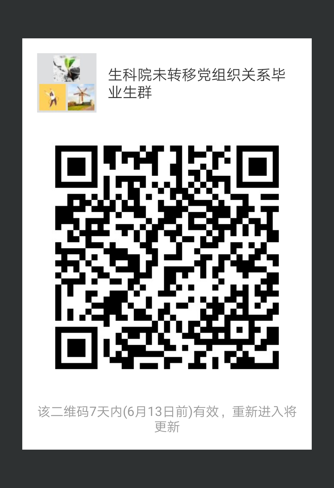 不能转移党组织关系的,请填写《tyc33455cc毕业生党员组织关系暂存(保留)公司申请表》(一式两份)。根据组织部的要求,毕业生未转走的党员需要统一管理,所以不能转移党组织关系的一律加入微信群“生科院未转移党组织关系毕业生群”,将自己的群名片改为自己的姓名,一旦转出,我会尽快移出群。微信群二维码如下图所示。