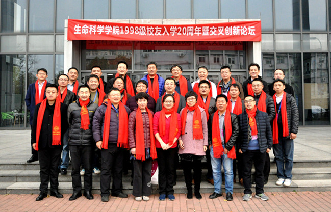 论坛于16:30结束,大家戴上锈有“98级生科院20周年纪念”的大红围巾,在生物站正门前合影留念,话别。