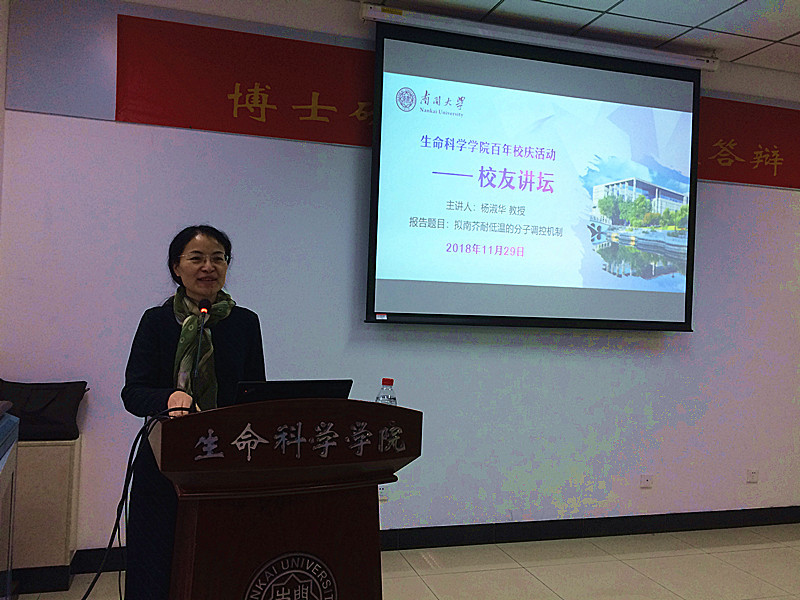低温胁迫严重影响农作物的产量和品质,阐释植物响应低温信号的分子机制具有重要的科学意义和现实意义。杨淑华教授在报告中介绍了她的研究团队在植物响应低温应答的信号传递网络方面的最新研究进展,特别是由蛋白激酶和蛋白磷酸酶介导的可逆磷酸化反应和多种植物激素在植物低温应答信号通路中的功能与作用机制。报告会场气氛热烈,与会师生踊跃提问,杨淑华教授耐心细致的解答了大家的问题,并分享了从事科研工作的一些心得体会。杨淑华教授精彩的报告也吸引了来自天津大学、天津农公司、天津农作物(水稻)研究所和天津黄瓜所等兄弟院校及科研单位师生的积极参与。