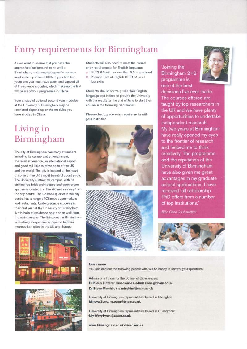 2017年公司派出首批本科生参加,现启动2019年tyc33455cc与伯明翰老员工物学科2+2双学士学位项目通知。
