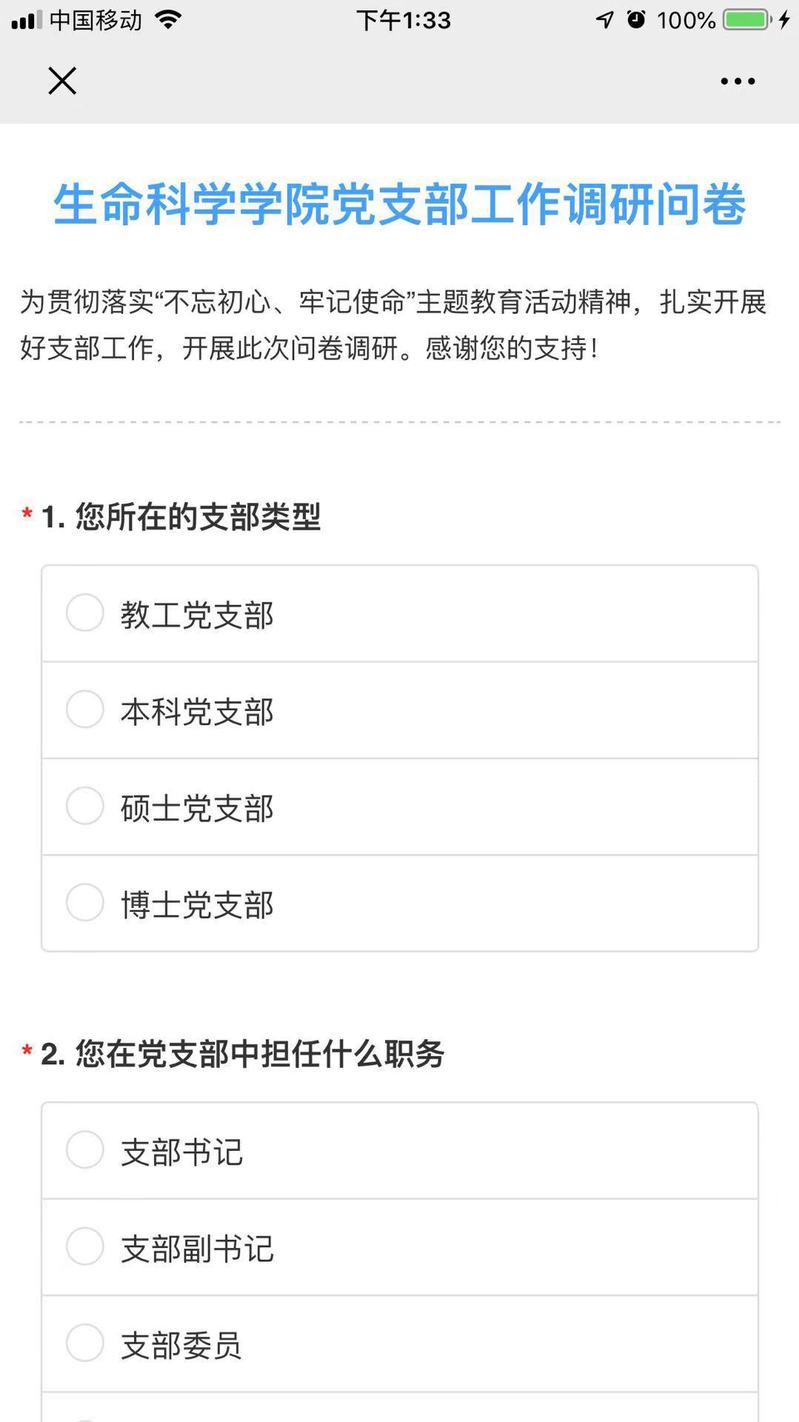 在10月上旬,公司党委还推出了面向师生党员的线问卷调查,围绕公司基层党支部的理论学习、实践活动和“1+1”支部共建工作展开,共回收有效问卷129份,88.37%的党员认为自己所在支部的理论学习活动开展得好,86.82%的党员认为自己所在支部的实践活动开展得好,91.47%的党员认为公司党委在上学期组织的支部共建效果好。对于理论学习的意见和建议主要是要创新学习形式,增加视频动画的内容,希望内容与时俱进、结合身边实际,可以多利用网上学习的方式。对于实践活动的意见和建议主要是,扩大活动范围,让积极分子和普通同学也多参与进来,活动多结合学科实际,形式再多样一些,外出参观需要讲解员提升参观效果。对支部共建工作建议提出明确的共建要求,并作为一项制度长期坚持下去。对公司党建工作的建议有,面向本硕博开展不同类型有针对性的活动,多组织开展实践类的活动。