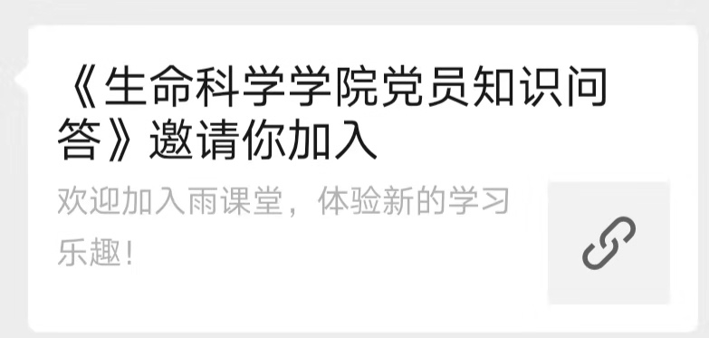 10月29日,生科院各支部书记老师都收到了这样一则消息。大家都想着赶紧答题完成任务,只是这次的答题入口似乎与往常不一样。不同于以往的答题小程序,这次老师们收到了一个链接。点进链接是智慧教学“雨课堂”的二维码,扫描二维码成功进入课堂之后便可以学习、答题了。