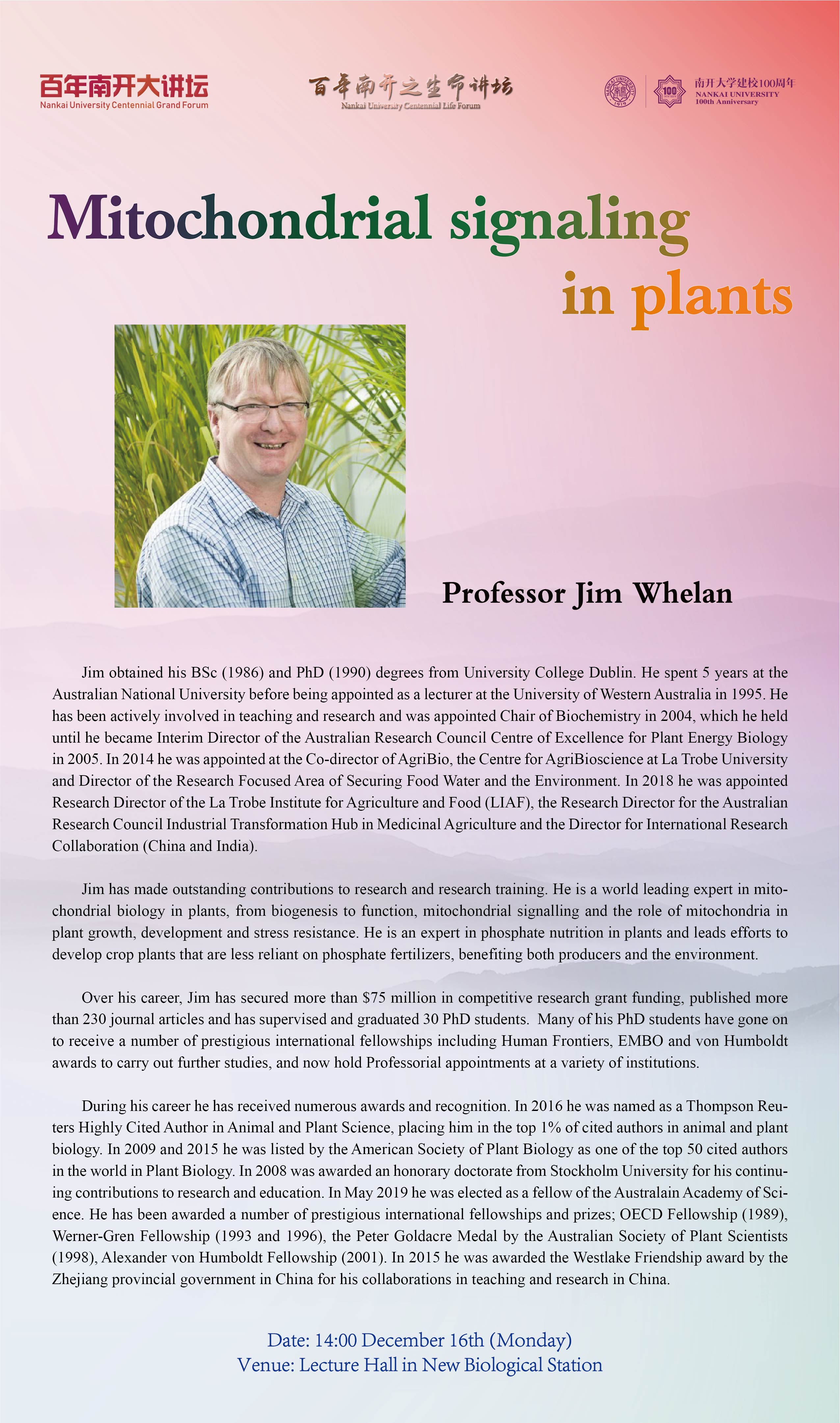 12.16 14:00 百年南开之生命讲坛 -- Jim Whelan