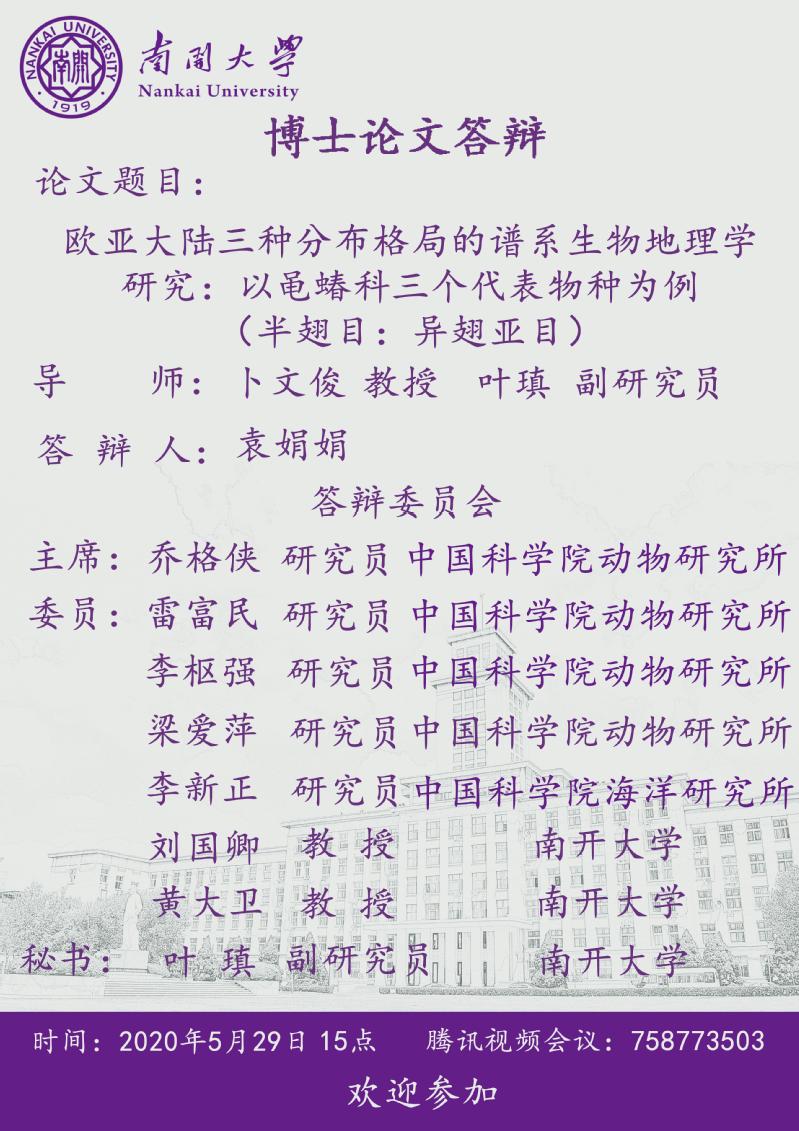 tyc33455cc博士研究生(袁娟娟)毕业论文线上答辩公告