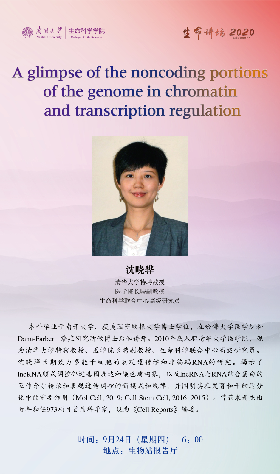 09.24 16:00 百年南开之生命讲坛-- 沈晓骅