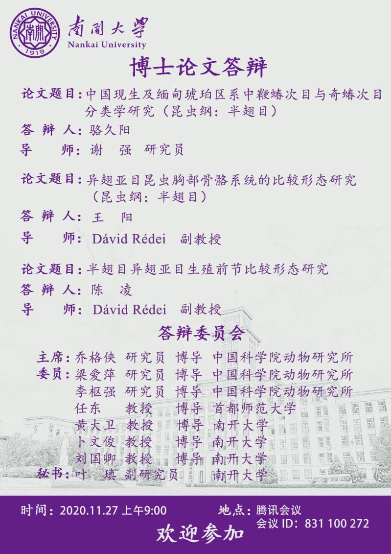 tyc33455cc博士研究生(骆久阳、王阳、陈凌)毕业论文线上答辩公告