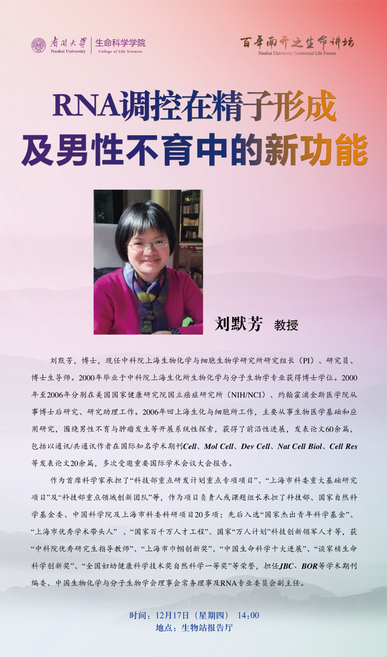 12.17 14:00 百年南开之生命讲坛-- 刘默芳