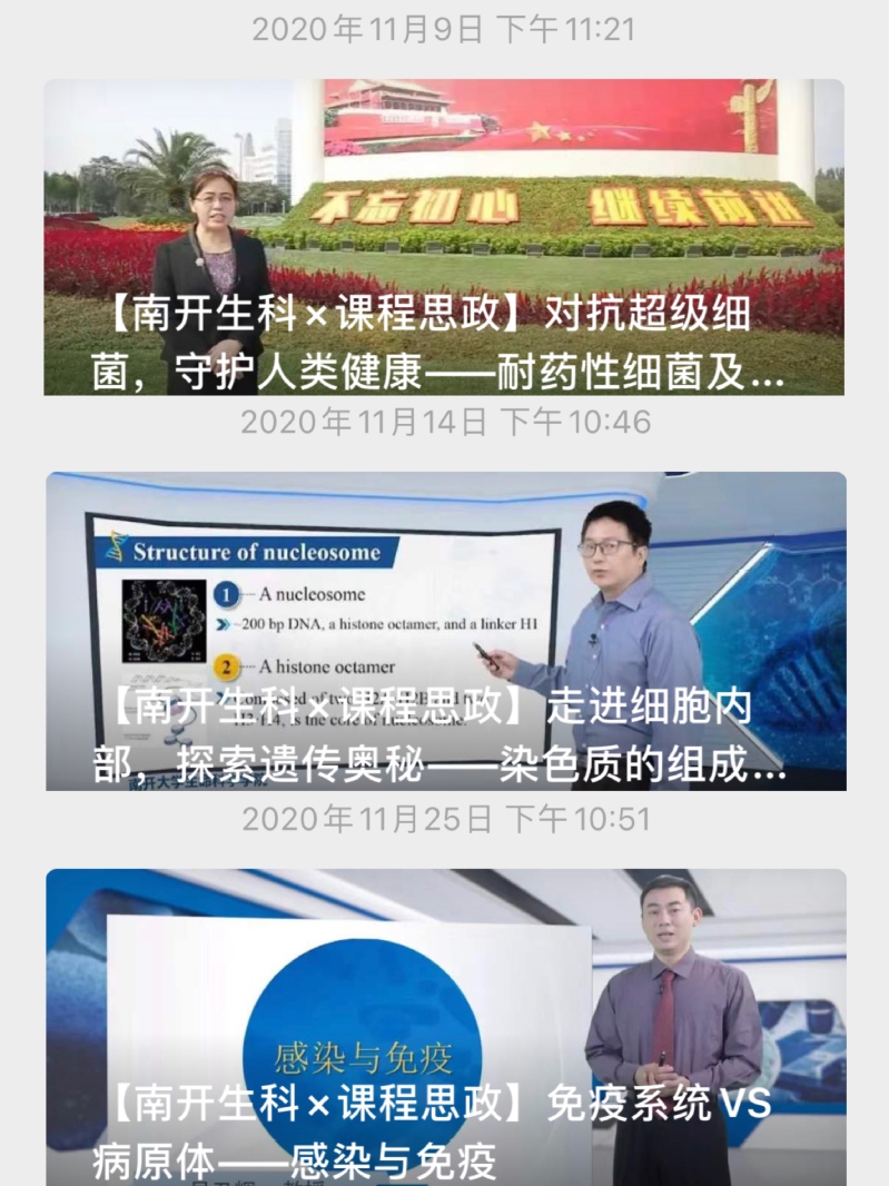 生科公司党委高度重视课程思政工作,自2019年底实施《tyc33455cc课程思政建设实施办法》以来,建立以党委负责人为组长的工作小组,多次召开研讨会,发挥党支部书记、系主任和副主任的带头作用,深入挖掘生物学科课程思政的要素,目前已经建成了一支政治水平高、专业素质好的课程思政教师队伍,在“南开生科”公众号上持续已陆续推出潘皎、陈凌懿、吴卫辉等老师的课程思政视频案例,积累课程思政工作经验,逐渐形成课程门门有思政、教师人人讲育人的良好机制。