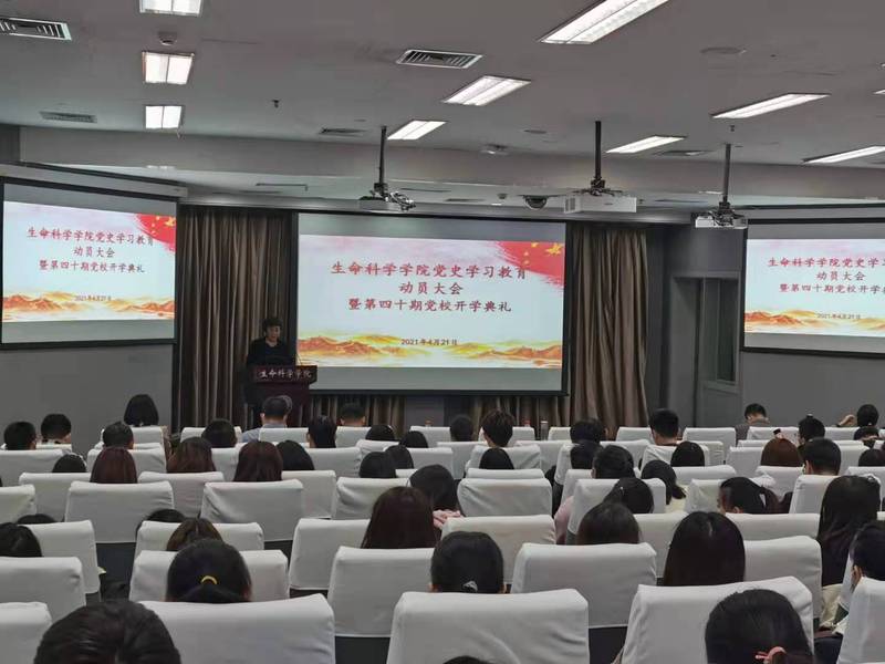(通讯员张磊)4月21日,生科院隆重召开党史学习教育动员大会暨首场主题宣讲报告,大会于线下、线上同步举行,线下设置两个会场,共计500余名师生党员参加会议。