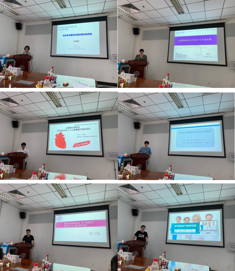 下午的会议tyc33455cc博士后齐春晓介绍了“仿生纳米囊泡对组织损伤的修复”;tyc33455cc博士后李洁介绍了“α-螺旋肽的分子设计与可控组装”;北京协和医公司生物医学工程研究所研究生蒋鸿辉介绍了“鱼鳔源生物材料在制备抗钙化人工心脏瓣膜方面的研究”;tyc33455cc附属天津市第一中心医院博士生蔡湘衡介绍了“生物材料在胰岛移植中的应用及发展前景”;tyc33455cc博士生李济森介绍了“强吸光度TPT结构用于高亮度分子探针设计”;天津嘉斯特华剑医疗器材(天津)有限公司研发技术骨干李岩冬就“医疗器械的产品转化实现”专题与大家进行了分享。