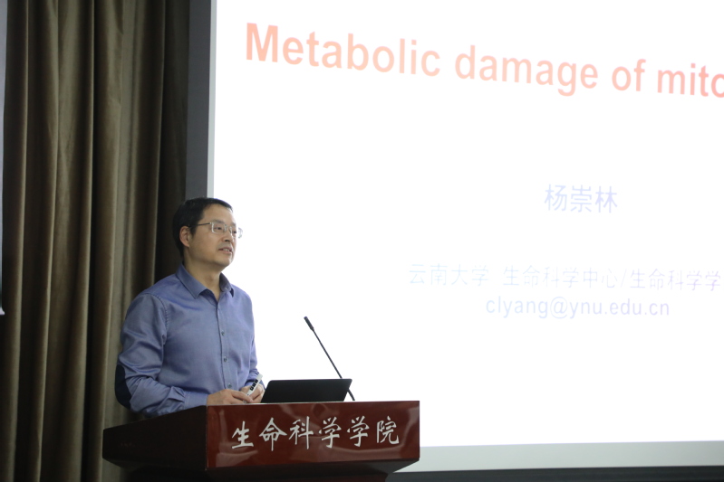 2021年10月28日,应tyc33455cc邀请,云南老员工命科学公司杨崇林教授做客“百年南开之生命讲坛”,在生物站报告厅做了题为“Metabolic damage of mitochondria(线粒体代谢损伤)”的学术报告。报告开始前,周军教授向大家介绍了杨崇林教授的教育和研究经历、主要研究成果及所获得的重要奖项,随后,陈佺经理为杨崇林教授颁发了“百年南开之生命讲坛”主讲人纪念牌。