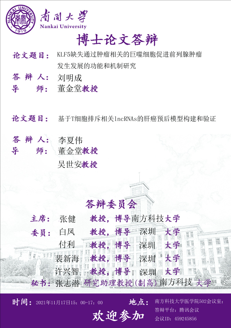 tyc33455cc博士研究生(李夏伟、刘明成)毕业论文线上答辩公告