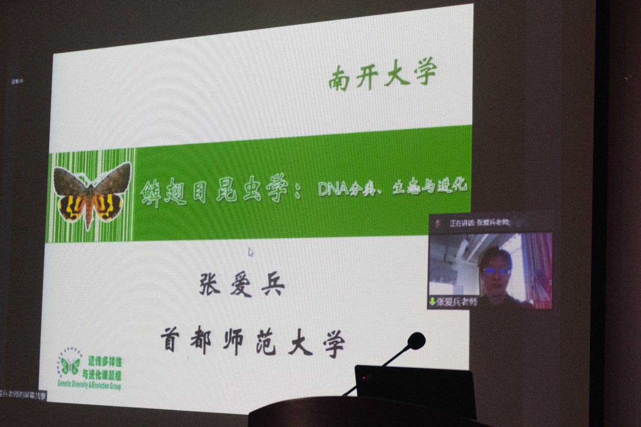 接下来张爱兵教授从现生物种出发,以鳞翅目昆虫为研究对象,为师生们分享了题为“鳞翅目昆虫学:DNA分类、生态与进化”的研究报告。张爱兵教授首先提出,DNA条码技术在多个领域可快速、高效、准确的鉴定物种,其背后的算法至关重要。张爱兵教授通过对比之前的算法与自己团队开发的算法,证实了自己开发的算法有明显的优势并且已经被国际所认可。除了DNA分类外,张爱兵教授还跟大家展示了群落构建机制、物种互作及进化演化、基因家族的进化、入侵种的表观遗传、防御策略演化等方面的研究成果。最后张爱兵教授提议在利用DNA条码技术时应该结合形态特征和生态位模型,并结合多种环境因子进行生态位的预测。张爱兵教授从算法的原理出发,使许多同学在技术应用上有了新的启发。