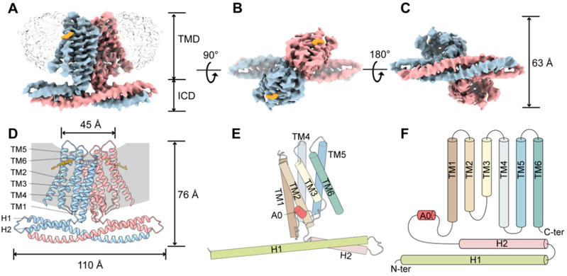 疼痛是一种生物体的警告信号,一般由环境因素激活的伤害感受器探测,并通过机械力敏感通道开放来实现信号传导,例如2021年获得诺贝尔奖的Piezo机械力通道,不仅传导触觉,而且与机械力触感痛有关。2020年3月加拿大科学家发现了一个新型离子通道,命名为TACAN,可以感知日常生活中的急性机械性疼痛,例如锤子砸到手指上引发的痛觉。2021年5月,美国科学家进一步利用大鼠模型发现TACAN在炎症产生的机械性痛觉中发挥作用,但是在化疗诱导的机械性痛觉中不起作用。然而,2021年8月在Elife同一期杂志上,美国洛克菲勒大学2003年诺贝尔奖得主Roderick Mackinnon课题组,美国德克萨斯西南研究中心Youxing Jiang课题组,中科院生物物理所刘振峰课题组/赵岩课题组/清华大学肖百龙课题组背靠背发表了三篇文章,他们解析了TACAN的冷冻电镜结构,并一致认为TACAN可能是一个辅酶A结合蛋白而非机械敏感性离子通道。2021年8月,西湖大学闫浈课题组解析了TACAN不同异构体的冷冻电镜结构,在Cell Discovery杂志上发表文章,认为TACAN生物学功能可能是脂代谢过程中的酶。这些三维结构基础上的文章挑战TACAN作为离子通道的生物学功能,但是遗憾的是,也未能提供强有力证据来确定TACAN的真实生物学功能。
