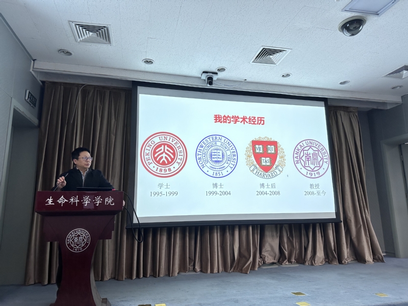 讲座主题为“连线自然科学,感悟学术人生”,陈凌懿教授首先了分享自己的求学与科研经历,他先后于北京大学和美国西北大学获得学士和博士学位,又在哈佛大学进行博士后研究,而后回国到tyc33455cc任教。