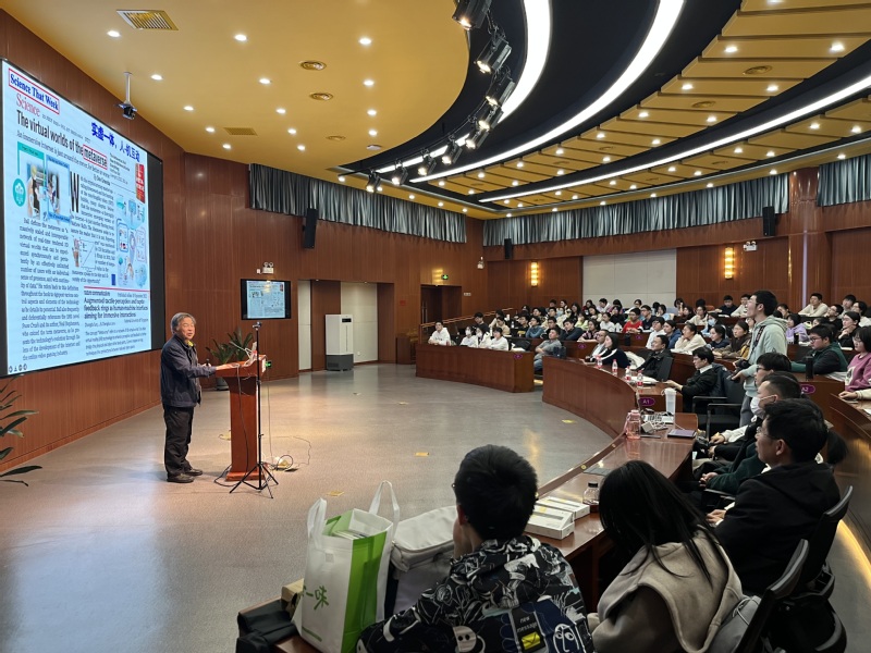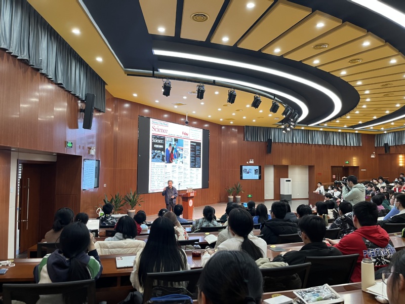 在150多位同学的热烈掌声中,杨焕明院士来到范孙楼报告厅的讲台,开始了精彩且极具个人魅力的授课。从“讲好中国故事”到“求实、求是、求真”,再到“好为人师”的“教书匠”;从新冠病毒的奥秘到火遍全球ChatGPT技术,再到生命的演化……这是正式讲课前,杨焕明院士讲述自己独具特色的课前常规。灵活好用的记忆方法令同学们拍手叫绝,丰富多彩的前沿发现令大家称赞不已。风趣幽默的讲述深深吸引着听课师生,探索生命奥秘的兴趣已在不知不觉中产生。