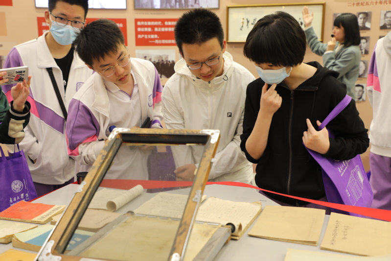 最后,二十一中的员工们参观了“南开百年校史展”,以此来了解南开历史,体悟南开精神。参观过程中,员工们认真聆听讲解并拍照记录,仔细观摩所展文物。
