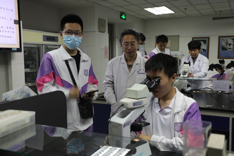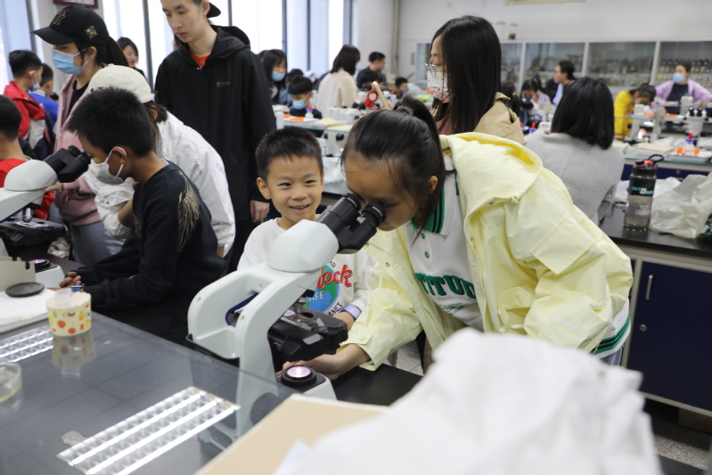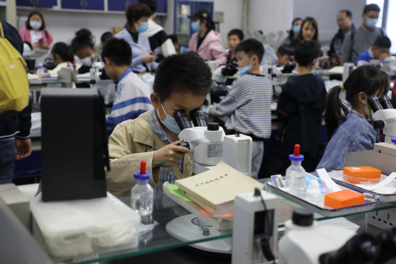 随后,参观同学前往南开老员工物科普基地了解生物学科普知识,生物国家级实验教学示范中心高级实验师王宏刚和石雪芹分别为中员工和小员工讲解了减数分裂和光合作用的相关知识,并让孩子们在实验中感受“生命之美”。