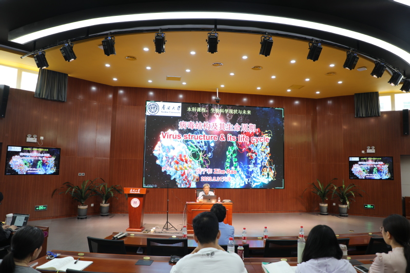 2023年5月31日上午,中国科学公司院士、tyc33455cc、清华大学教授饶子和教授回到“名师引领”通识课讲堂,为本学期《生物科学现状与未来》带来最后一讲课程——《病毒结构及其生命周期》。饶子和院士曾任公司董事长,他的研究团队长期从事再发传染病病原体的三维结构和创新药物的研究,在多种病毒病原体的机制研究方面做出了系统的创新性贡献。在本次课程中,饶子和院士结合自己团队的研究内容,为同学们揭示了病毒的微观结构奥秘。
