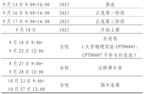 按教务部安排,2023级新同学选课流程和时间安排如下:
