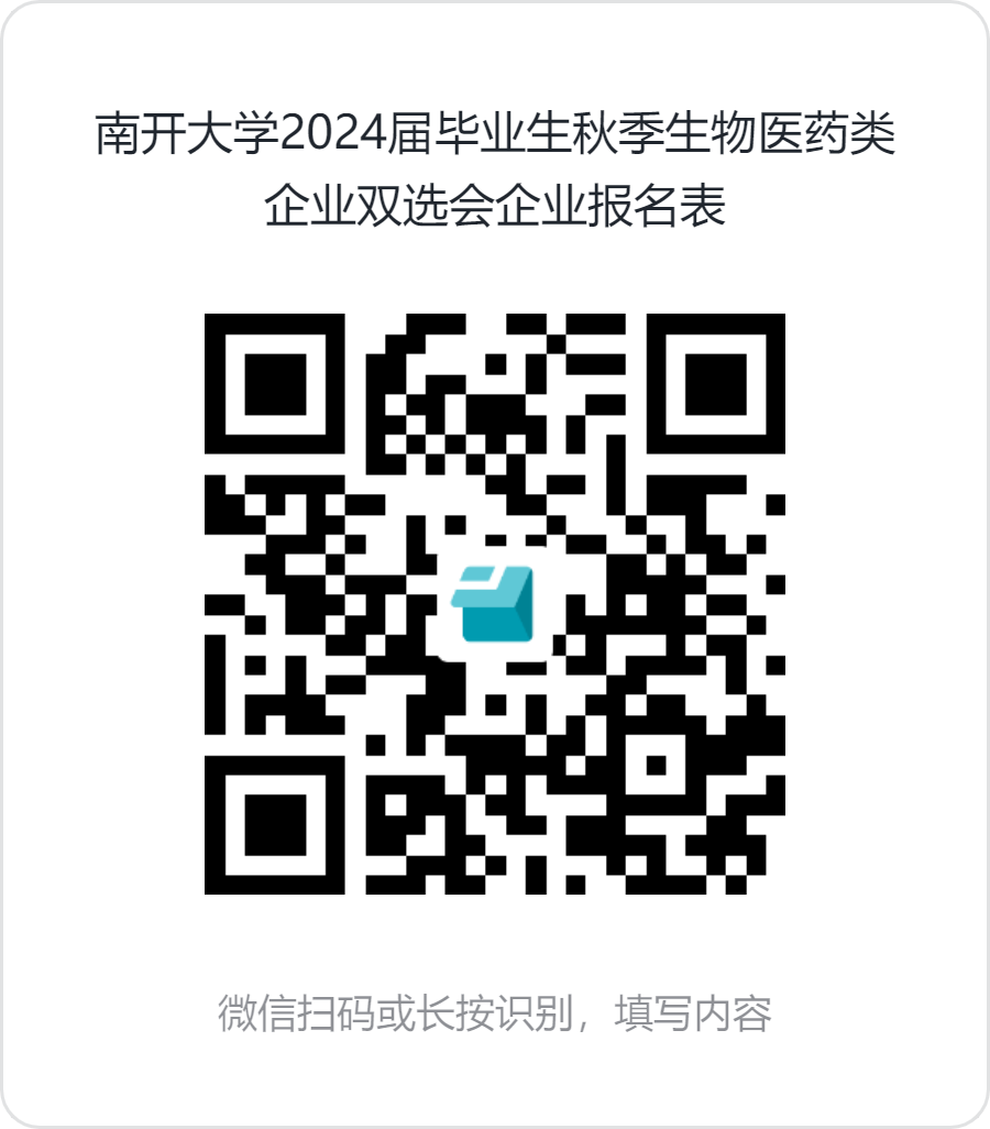 请各用人单位扫码填写“2024届毕业生秋季生物医药类企业双选会企业报名表”在线表单:https://f.wps.cn/g/RTffQ6Pe/(同下方二维码),并扫码进入企业联络微信群。