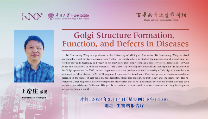 3.14 14:00 百年南开之生命讲坛-王彦庄
