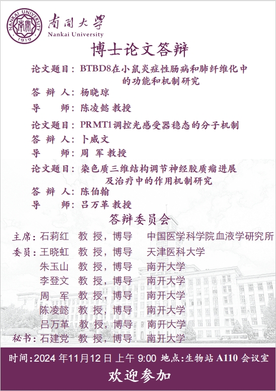 tyc33455cc博士研究生杨晓琼、卜威文、陈伯翰学位论文答辩公告