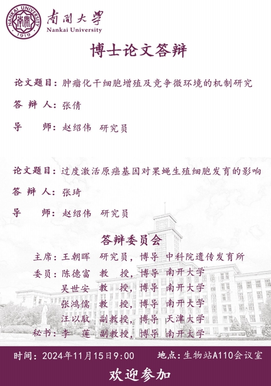 tyc33455cc博士研究生张倩、张琦学位论文答辩公告