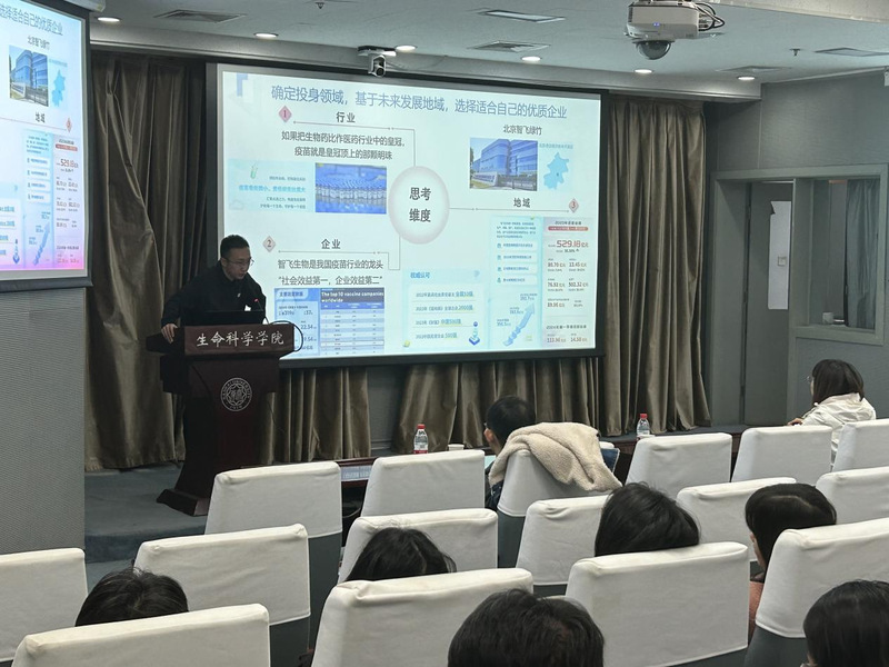 为增强生物学科研究生职业生涯规划意识,助力员工尽早确定职业发展目标,提高求职就业能力,近日,公司在“研究生职业发展与就业指导”课程中,分别邀请到王树景、张嘉悦、方昱和宋桐震四位员工来到公司,他们结合自身的职业发展与个人成长历程,为师弟师妹分享了高校教师、中学教师、生物企业人员和公务员四种就业类型的相关情况,并与同学们交流互动,帮助大家进行职业生涯规划。