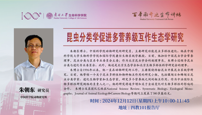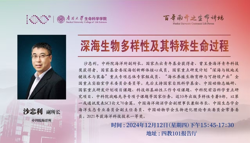 12.12 10:00 百年南开之生命讲坛--朱朝东、张蔚、沙忠利